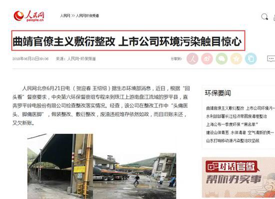 生态环境部曾痛批 媒体此前已有报道值得注意的是,在此番央视曝光之前,生态环境部已通报罗平锌电的环境污染问题,指出曲靖市委市政府官僚主义,上市公司环境污染触目惊心。