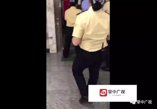 报料人提供的另一段视频中,嫌疑人露出了头脸,目测年龄约在30-45岁之间,此时地铁站务人员已到场将该男子控制住,随后将其带走。