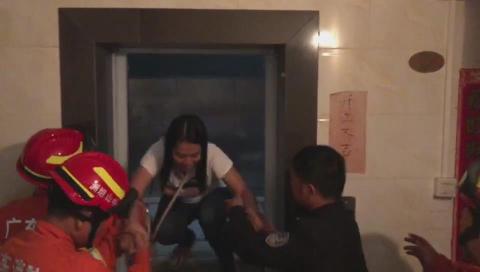 消防队员到场后发现,发生事故的电梯轿厢停靠在四楼与五楼之间,被困的母子身体状态良好。消防队员在四楼利用电梯万能钥匙将外部的电梯门打开,再利用铁梃把内部的轿厢门撬开,最后利用液压扩张器把轿厢门撑开。消防队员首先把坐在婴儿车上的孩子救出,随后搀扶母亲下来,直到此时全程一脸淡定的孩子才开始放声大哭。