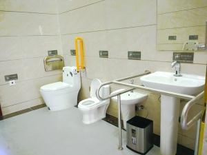 在日常生活中,行为障碍者、行动不能自理的市民,往往需要亲人(尤其是异性亲人)协助如厕,“第三卫生间”的概念应运而生。在宝安中心区海滨广场公厕的母婴室,残疾人坐便器、儿童坐便器、折叠式多功能台应有尽有,洗手台、小便斗旁都设置了扶手。一位残障人士代表对这些人性化设施赞不绝口,同时建议:“残障人士站起来时需要借力,坐便器可以多加一个扶手,另外小便斗的空间可以适当扩大一些,方便轮椅回转。”