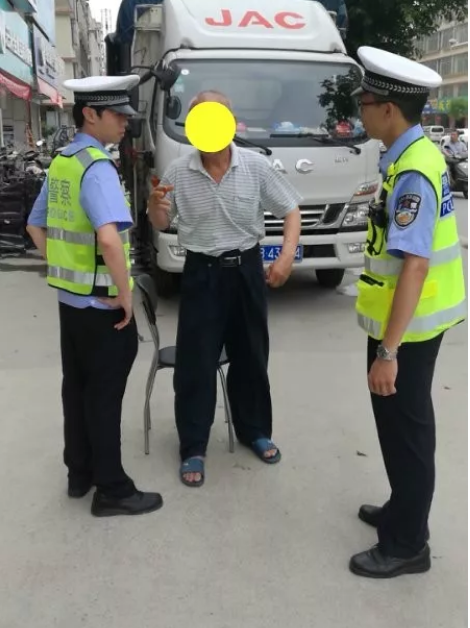 在路口岗位执勤的李杰等人因还需要执行交通指挥工作,不能长时间离开岗位,于是从附近的商铺借来了一把凳子,让老人先坐下休息。接着他们马上联系了该区域路段巡逻组的同事,让正在巡逻的同事张优裕、贝宁、李凯林等人前来帮助老人回家。