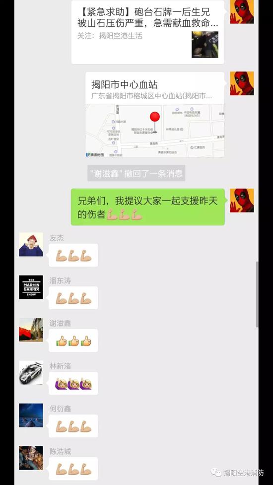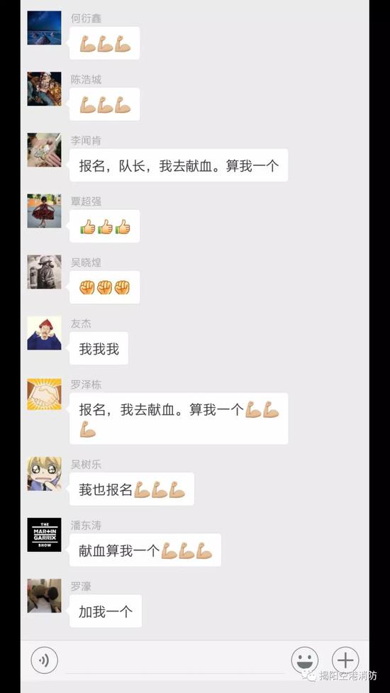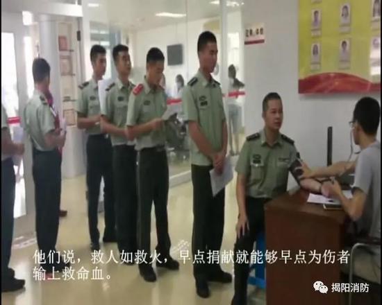 次日,在得知伤员术后急需O型血小板后,揭阳空港消防全体官兵踊跃报名,大队领导立即与医院方面取得联系,组织献血活动。