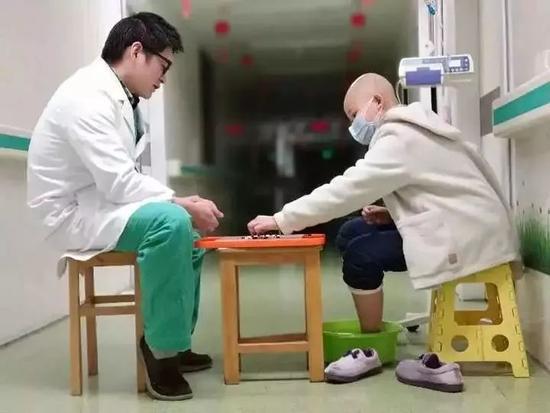 医生陪患儿下棋照片感动网友