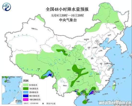 据预报,未来三天,华南、贵州、四川盆地、西藏东南部、台湾等地将有中到大雨,其中,广西南部、广东中西部沿海等地的部分地区有暴雨,局地大暴雨(100~130毫米),局部地区还将伴有雷暴大风、短时强降水等强对流天气。