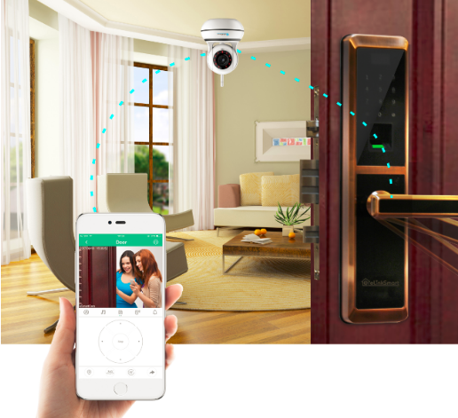 亿联智能研发的业界首款智能摄像头与智能锁套装,首先就能很好地解决上面全自动智能锁的安全性顾虑,搭配家用网络,用户可以在手机APP收到开锁信息,可以查看摄像头抓拍的照片看是谁开了门,也可以查看开锁记录。更为便利的是,对于类似换保姆,家里临时来人需要增加、删除密码等操作,比传统的配钥匙简单得多,只需要随时通过手机APP简单设置就可以搞定。大大提高了家庭的安全性和使用便利性。