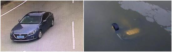 很快,车沉在水里,就变成这样了。