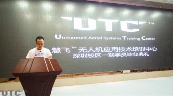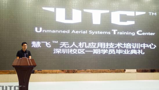 (2016年8月29日 深圳)慧飞无人机应用技术培训中心(Unmanned Aerial Systems Training Center, UTC)深圳校区于8月29日在坂田星河·领创天下举行一期学员毕业典礼。
