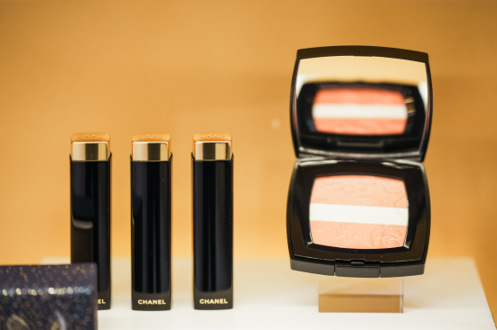 本季彩妆系列有限定创作的香奈儿高光腮红盘,呈现细腻的粉末质地,以耀目星光为灵感,为脸庞拂上一抹柔亮如缎的动人光泽;限定创作的香奈儿四色眼影呈现品牌标志性作品,表面饰有5种经典香奈儿象征符号的浮雕图案,以和谐配色演绎浩瀚宇宙与璀璨星辰,致意神秘梦幻的夜空;香奈儿魅力丝绒唇膏也推出两款限定创作,演绎色泽惊艳的柔亮哑光唇妆,分别是69号浓郁玫瑰木色、58号红木色等。