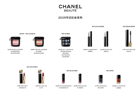 据介绍,香奈儿2025节日彩妆系列由香奈儿彩妆创意工作室和COMETES COLLECTIVE团队成员Cécile Paravina创作,以广袤星空的绚丽色彩及明暗交织的双重魅力为灵感,诠释辞旧迎新的节日氛围。