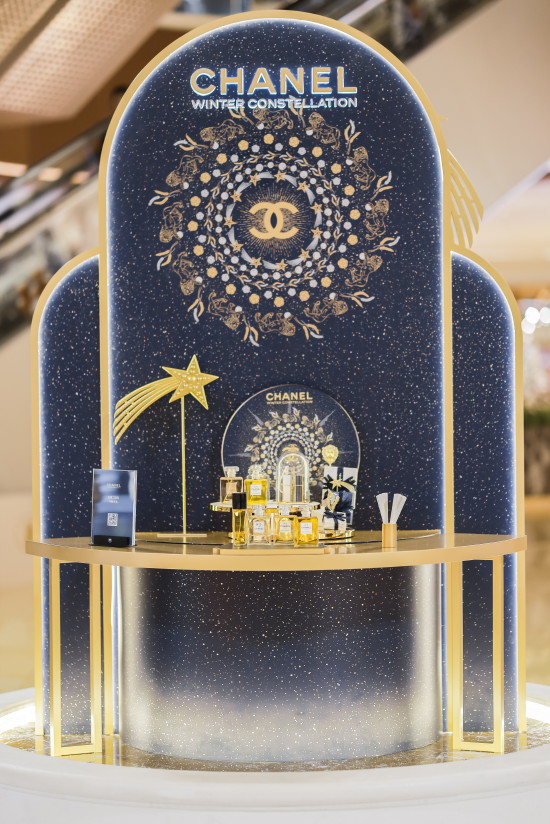游客在现场可以感受香奈儿2025节日限定包装与限定彩妆系列,沉浸式体验香氛层叠艺术、彩妆/护肤1对1服务、璀璨星环手工坊;还能使用星夜快拍的节日专属滤镜,记录一场奇幻的星夜巡游旅程。